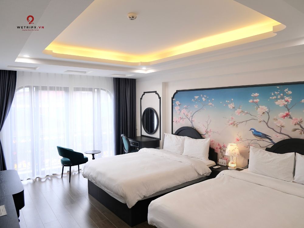 Khách sạn mới xây dựng sở hữu thiết kế mang hơi hướng Indochine, kết hợp tinh tế giữa hiện đại và cổ điển. Các phòng nghỉ rộng rãi, trang bị đầy đủ tiện nghi như TV màn hình phẳng, minibar, tủ lạnh, ấm đun nước, bàn làm việc cùng phòng tắm riêng hiện đại. Một số phòng còn có ban công hướng phố, tạo không gian thư giãn lý tưởng.
