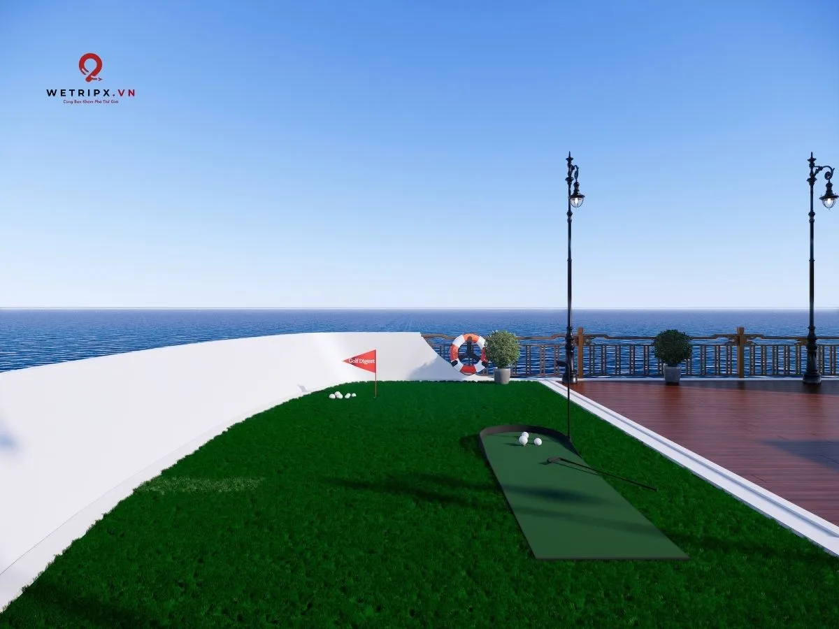15:30: Tận hưởng tiện ích 5★: cầu kính – Jacuzzi – sân golf mini. Tắm biển bãi hoang sơ nước xanh biếc.