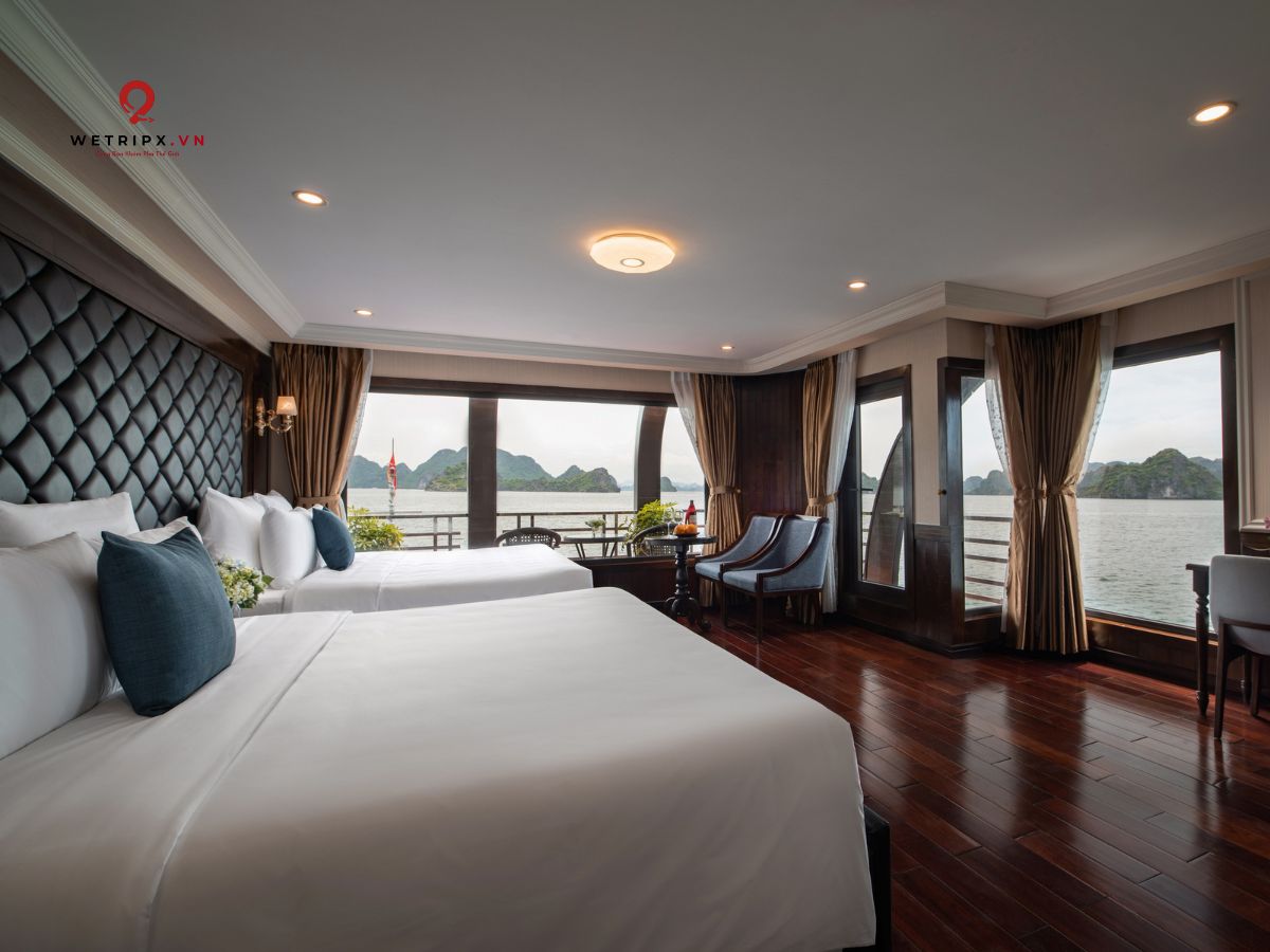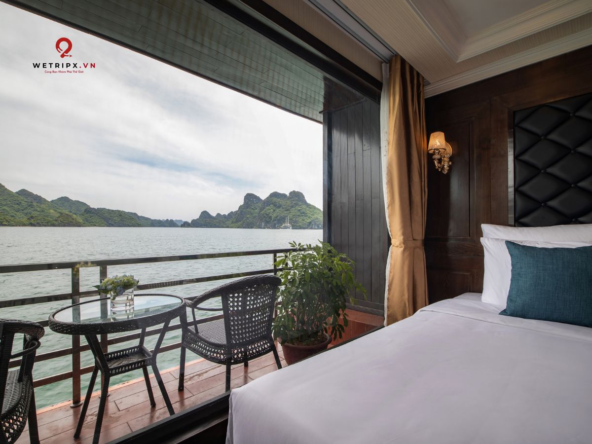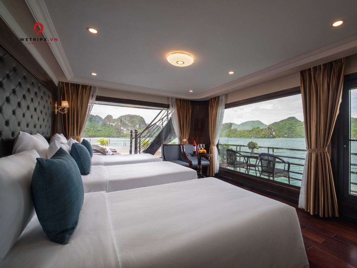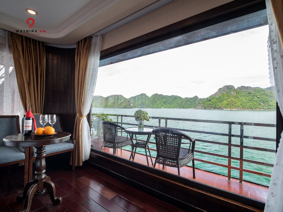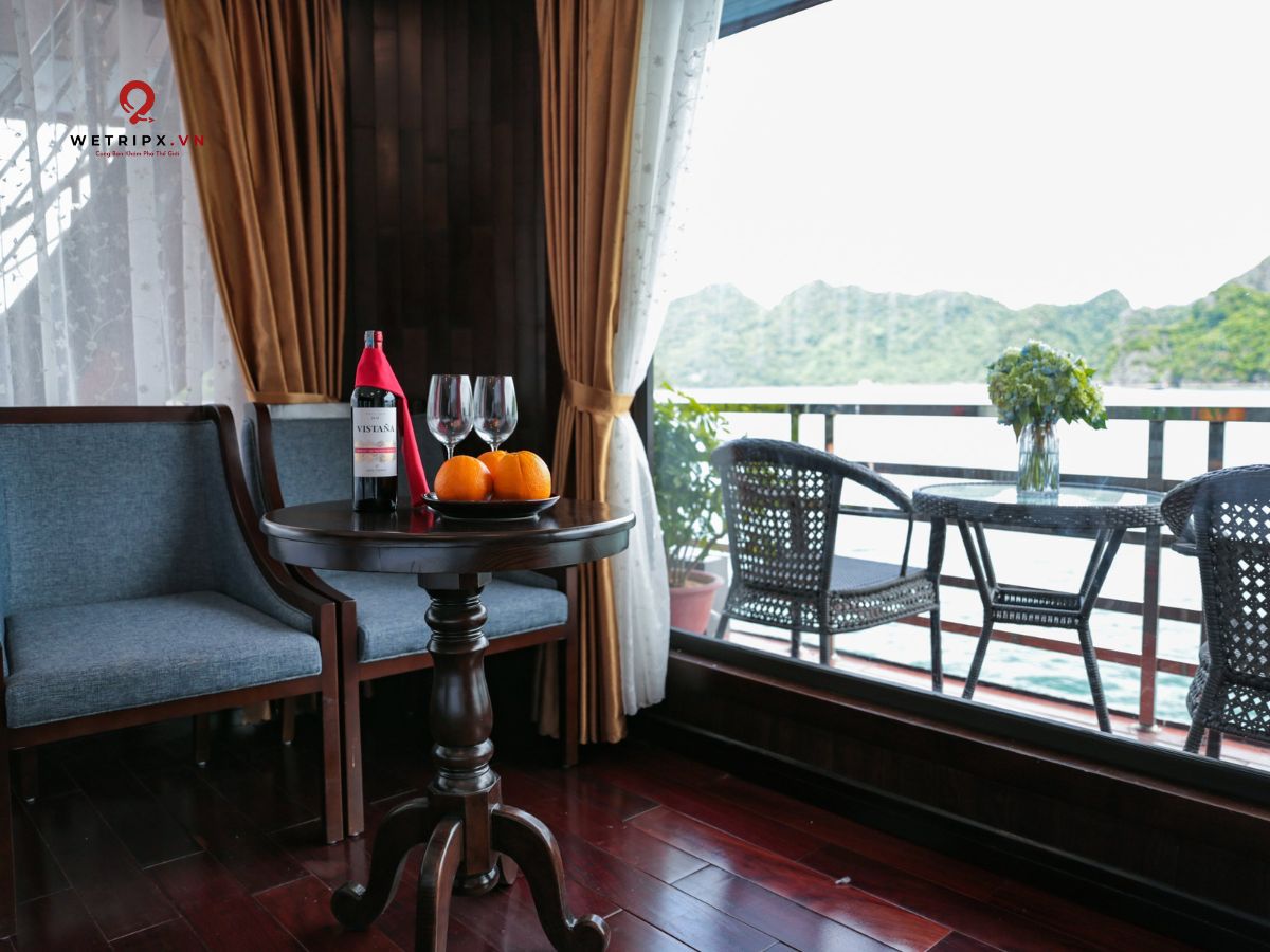 With thirteen cabins available, each Suite Balcony offers elegant décor and a private balcony with a stunning view of Lan Ha Bay. Perfect for couples seeking comfort and serenity during their voyage.