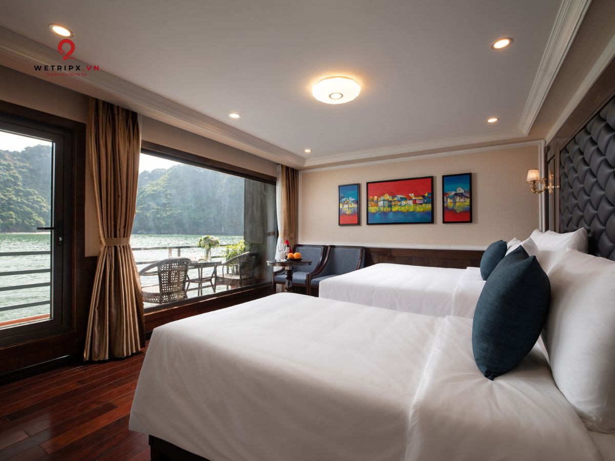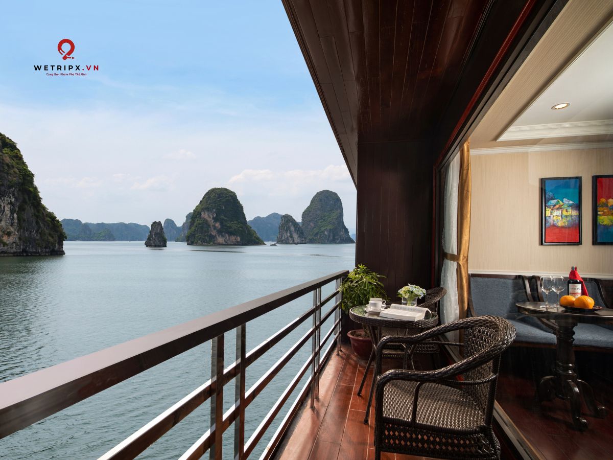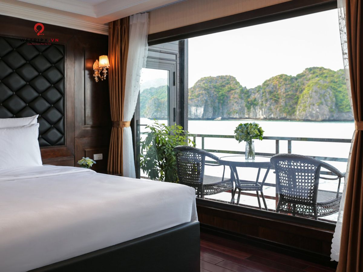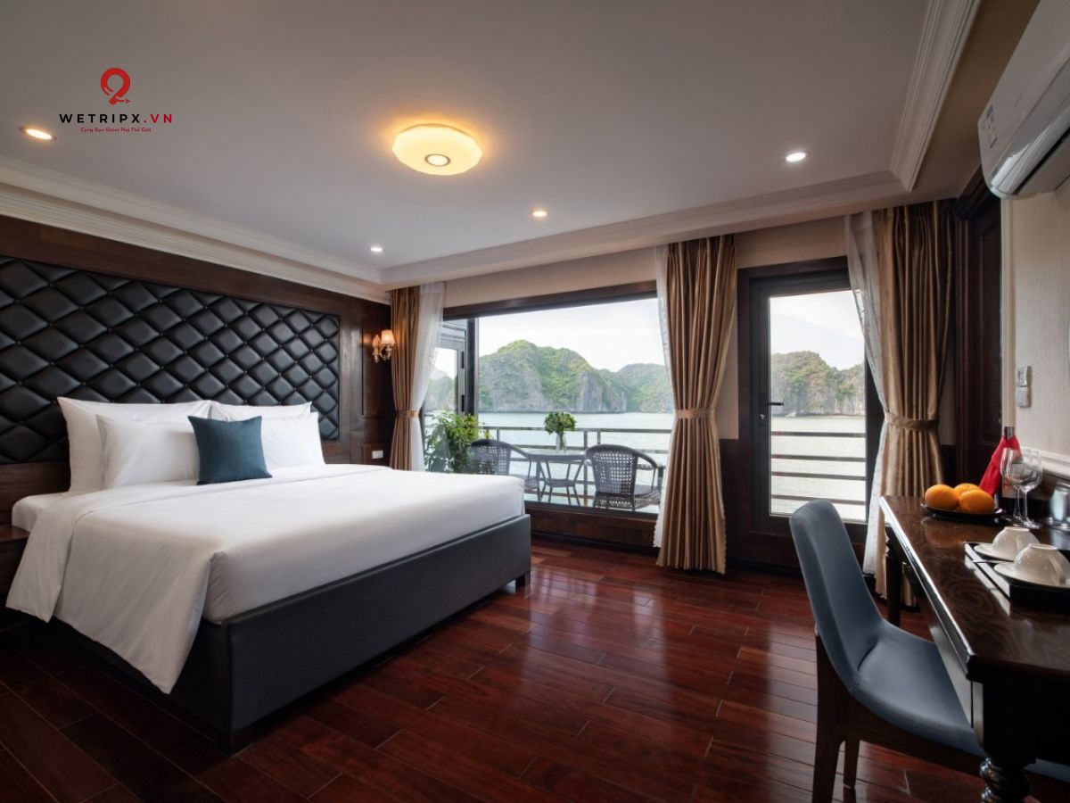 With thirteen cabins available, each Suite Balcony offers elegant décor and a private balcony with a stunning view of Lan Ha Bay. Perfect for couples seeking comfort and serenity during their voyage.