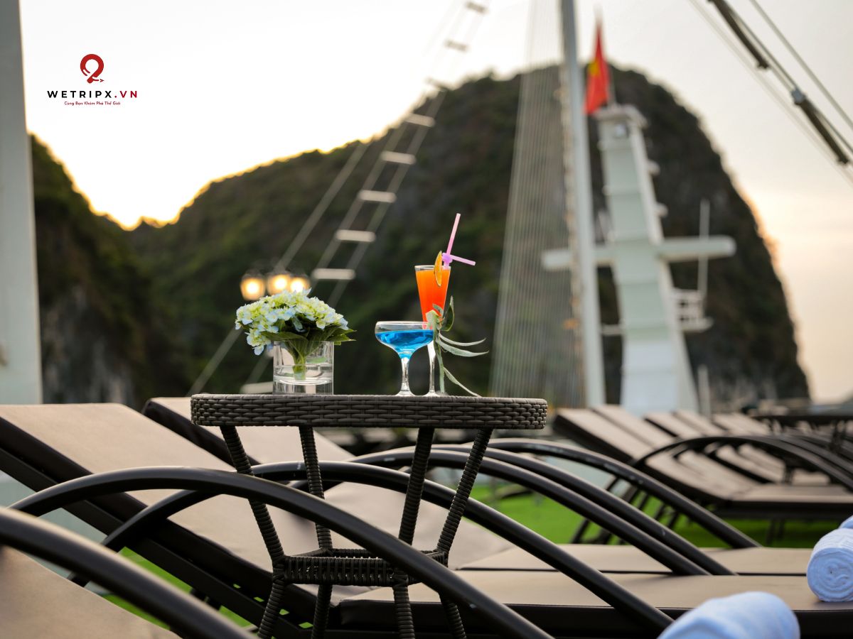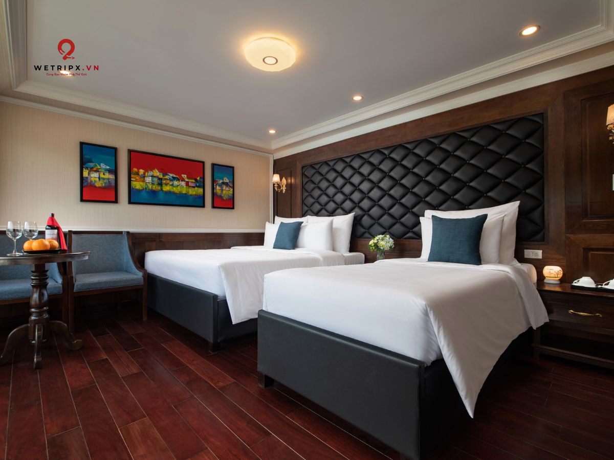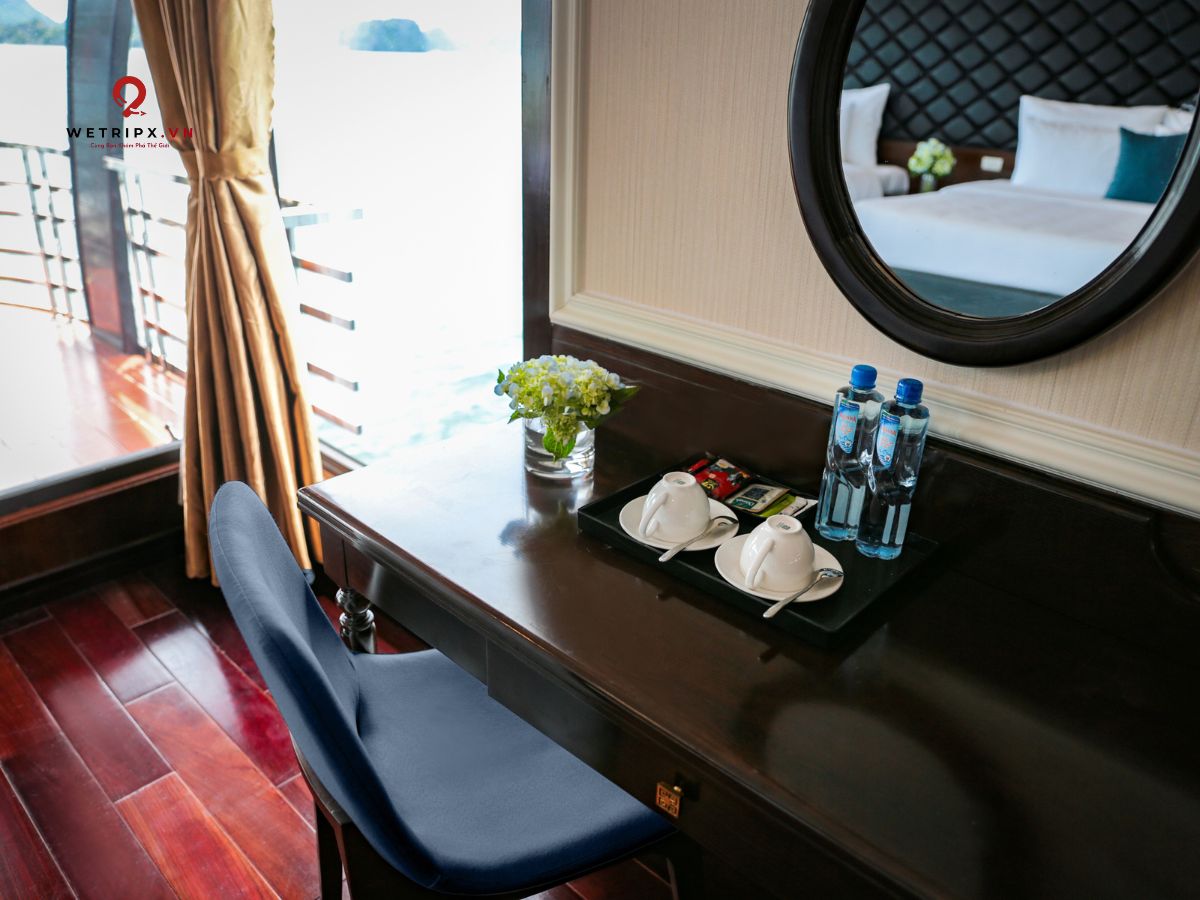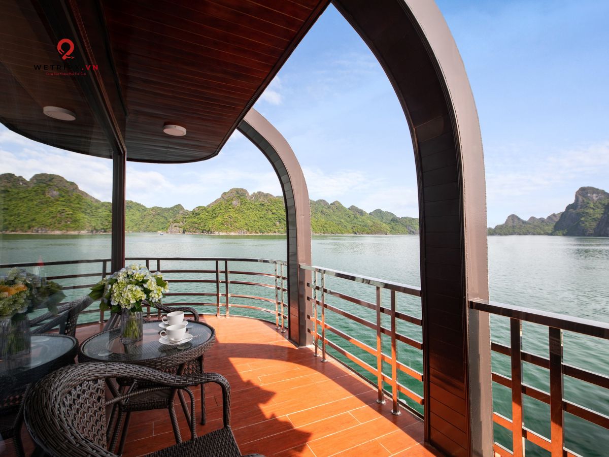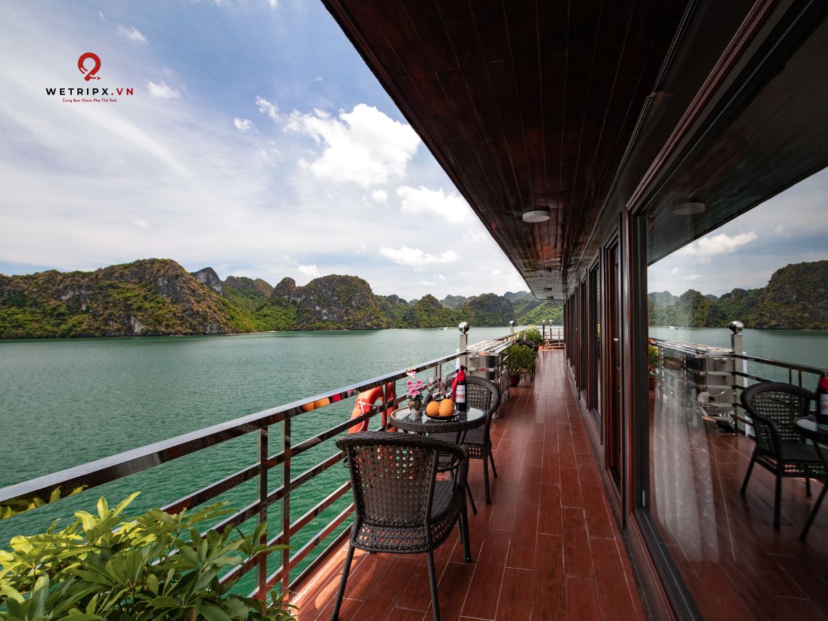 With thirteen cabins available, each Suite Balcony offers elegant décor and a private balcony with a stunning view of Lan Ha Bay. Perfect for couples seeking comfort and serenity during their voyage.