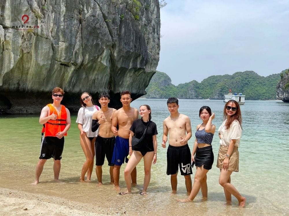 • Dừng chân tại bãi tắm Ba Trái Đào – bãi tắm hoang sơ và đẹp nhất vịnh Lan Hạ.